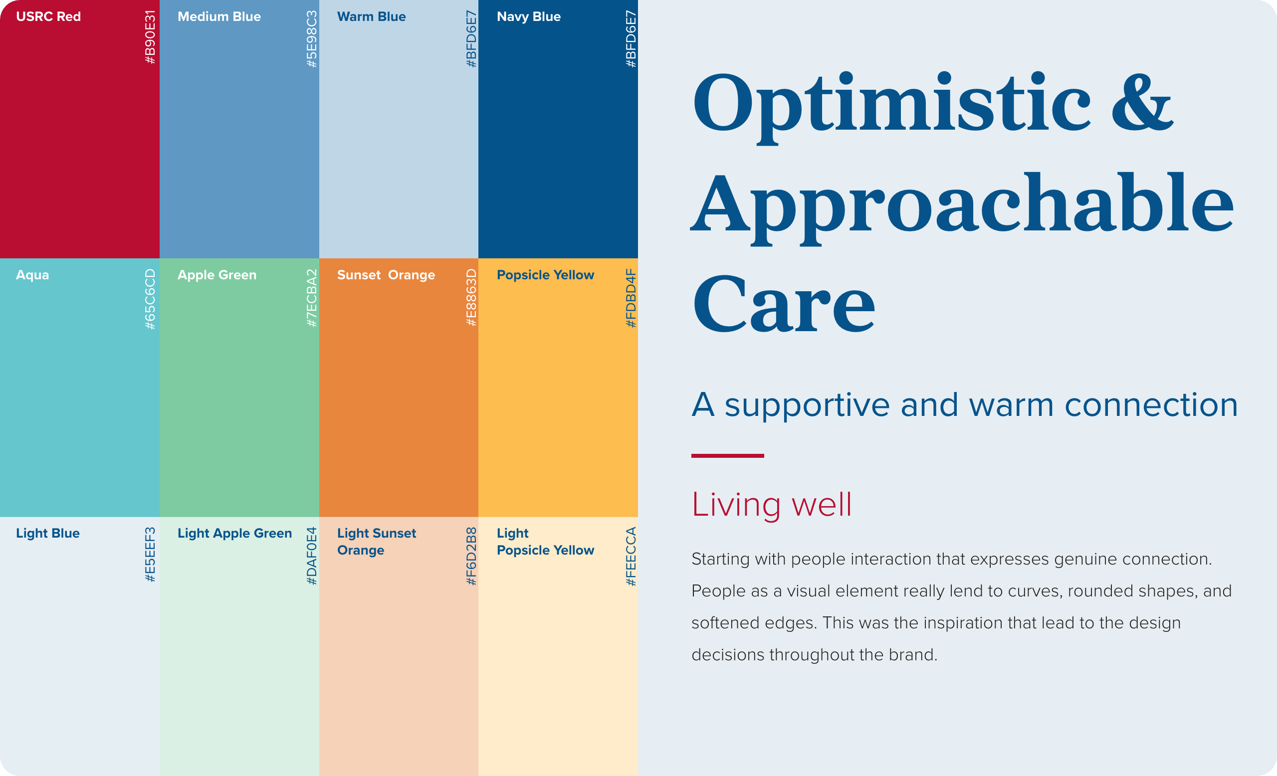 The new USRC brand is inspired by people connecting through genuine touch that expresses connection. People as a visual element lend to curves, organic shapes, overlapping elements, and rounded edges.